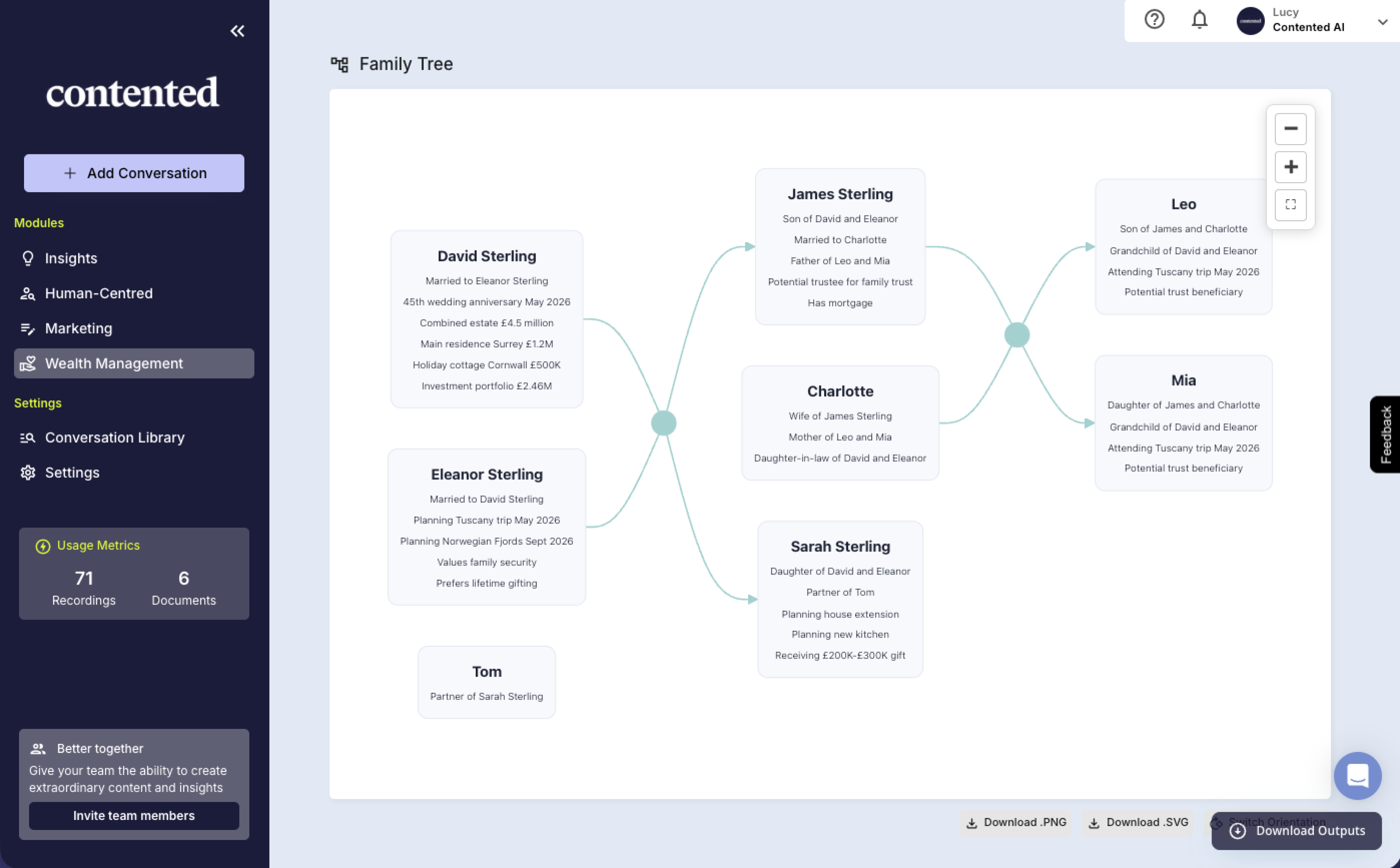 Using the Contented app, record any conversation - client meetings, strategy sessions, or even your long walks on the beach. Once saved, these will automatically sync to your Contented platform, ready for you to create insights.