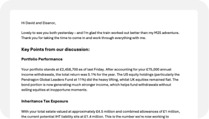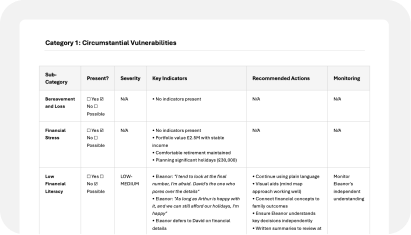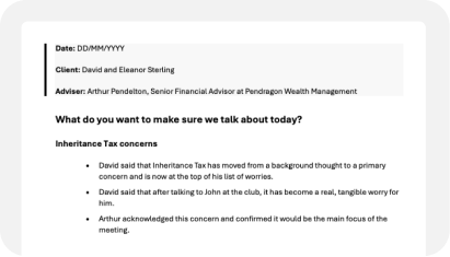 Transform your conversation into business-ready documentation using our expert templates. From statements of advice, family tree diagrams, decision logs, to motivation maps.